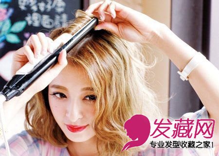 上层的头发和下层的差别是,要从发根开始做出卷度,其他的卷法和下层都相同。