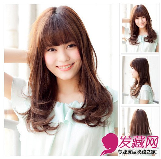 发型点评:空气感刘海轻盈自然,隐约露出额头清爽感十足。棕色长卷发蓬松华丽,甜美吸睛。