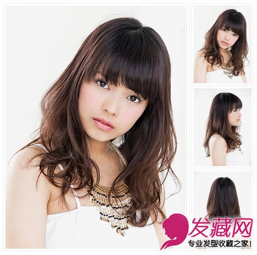 发型点评:长刘海轻盈舒爽,衬托出灵气十足的双眼。栗色长卷发烫出蓬松的卷度,衬托出甜美迷人的气质。