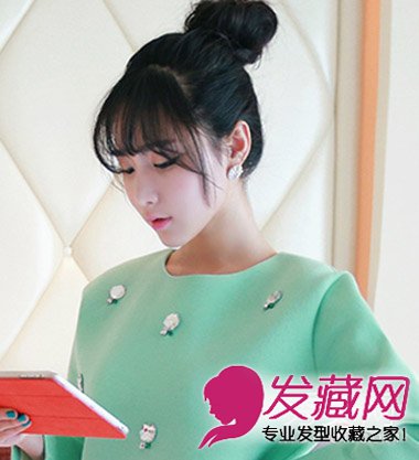 乌黑发亮的头发,扎成了高位的丸子头发型,可爱又显精气神,稀疏的齐刘海,不仅修颜还有点小神秘感哦,搭配小巧的瘦脸,清新可爱更可人呢。