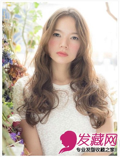 发型点评:中分长刘海烫出轻盈线条感,修饰出一张完美瓜子脸。大波浪长卷发让你美得如花中仙子一般。