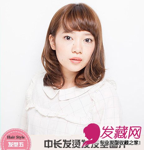 发型点评:圆弧形剪裁的刘海别出心裁,可爱俏皮又不失清爽感。螺旋烫中长发随意的摆动在脸颊两侧,清爽大气。