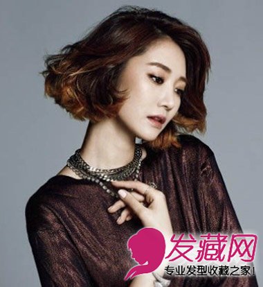 蓬松的短卷发,发尾形成蓬松感包裹住下巴起到很好的瘦脸作用, 优雅时装与个性的