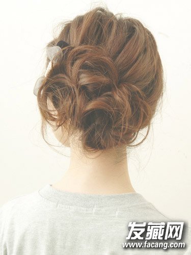 背面效果:脑后的头发扭转成花骨朵儿般的造型,簇拥在一起仿佛盛开的繁花,绚丽迷人。