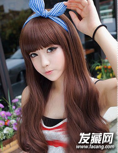 ,其实只是简单的将长发发梢进行微显蓬松式的烫发造型,再配合时尚的棕色