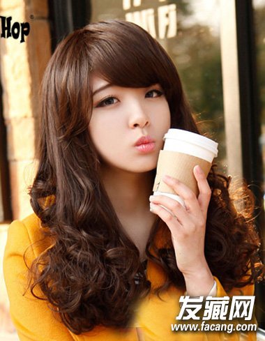 韩式蛋卷头发型一直以来都是特别受大家喜爱的一款造型,而这种将长发发梢进行丰盈蓬松式的韩式蛋卷头烫发发型处理,现进 配合半圆形的刘海与清新的咖啡色染发相搭更显女生的温柔可爱感。