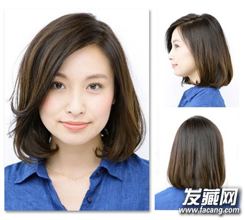 及肩式的梨花头甜美中带点清爽,刘海部分微微外翘,让整个
