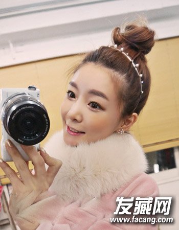 流行韩国女生扎发发型 精致的双花苞头卷发最可爱(8)