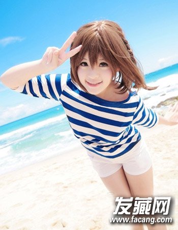 颇为可爱一款小脸发型,简单的蓬松短发发型,加上小小的辫子编发的点缀勾勒出别致的时尚感来, 显露出简单而且大气的一面。当然修颜扮嫩也是不错的哦。