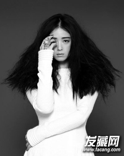 中分刘海设计+玩味十足的蓬松烟花烫,营造出另类时尚感。