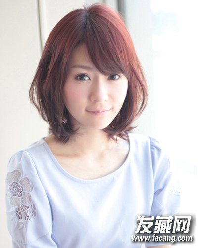 STYLE 7 刘海斜分,盖住脖子的头发做蓬松,更好的修饰脸型,配上酒红色提升白暂肤色。