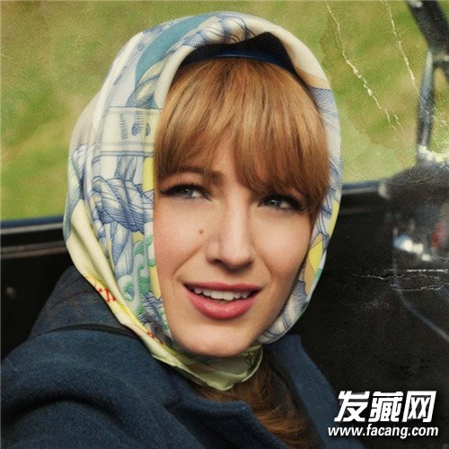 颜色并不是特别亮丽的浅色头巾,有种非常甜美的感觉。白绿黄三种颜色本来就比较养眼,配上碎花显得更加俏皮,绑上这样的头巾,加上平刘海的,颈部留下其他长发,在美式乡村风盛行的时代绝对抢眼。