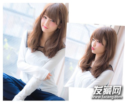 9款时髦长卷发发型 圆脸细碎齐刘海发型(6)