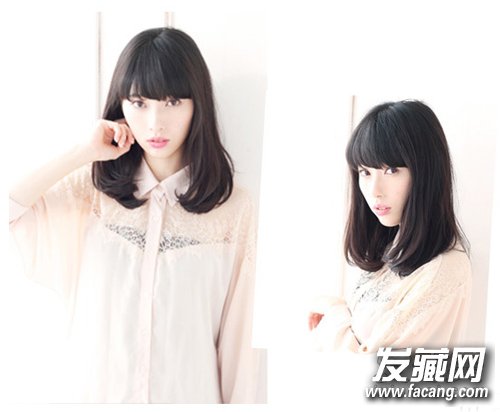 红肿的齐刘海蓬松内扣,显得自然而不呆板,突出MM俏丽五官,及肩内扣发尾让MM脸蛋看起来更小更尖。不经漂染的黑发更加自然动人。