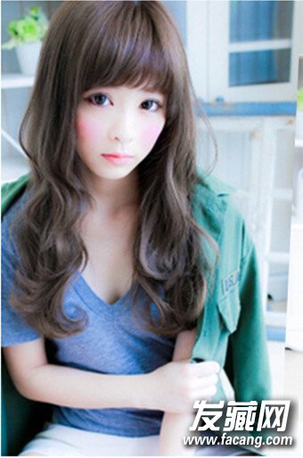 厚重的齐刘海的尾部做成轻微的卷曲,凸显出美眉的一双电力大眼,长长的波浪卷发尾线条清晰,可以很有效的遮盖两颊的肉肉,衬托出一张小脸,整体发型看起来充满灵气。