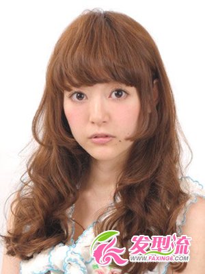 一款较为常见的螺旋卷烫发发型,这款发型的亮点在于刘海设计以及脸颊两侧的两屡头发所带来的蓬松感!长至胸前的秀发经过完美的烫发技巧,将头发制造出一种立体感十足的螺旋卷度,特色的刘海设计也很好的隐匿了长脸,一眼看上去就像是鹅蛋脸的效果!