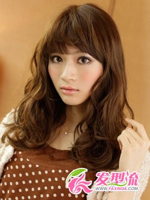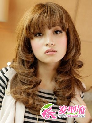 利用微卷发达到瘦脸的效果,是个明智的选择。将中长烫发随意的散落在肩上,散发迷人的气质。及眉的刘海长度减小了脸部面积,奶茶色染发在冬日让人感觉很是。齐刘海既减龄又不会过于成熟,很适合知性型女性哦!