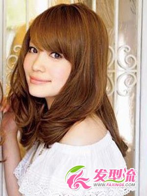漂亮绚丽的棕黄色染发让女生的皮肤看上去更加的白皙通透,覆盖式有点斜刘海掩饰的秀发与两侧S型弧度打造出巴掌脸的效果,脸部线条比较圆润的姑娘们可以大胆采用这样的发型改变你不够完美的脸型哦!