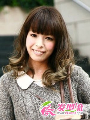 其实卷发相对来说比较普遍,那么怎么能让秀发起到瘦脸的租用呢?当然是利用两颊两侧的蓬松具有动感气息的蓬松度来改变脸部的轮廓啦!仔细看的姑娘们都会发型发色的上下不同,对就是利用上深下浅的颜色来打造小V脸的效果,冬季搭配毛衣非常的不错哦!