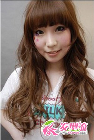 和适合80、90的姑娘们呢!利用可爱感的齐刘海来避免卷发过于成熟的味道,好的衔接以及好看的弧度营造小脸效果,蓬松有活力的大卷发搭配T也能够诠释你的活力!