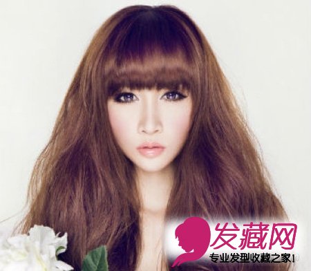 超级长发的MM可以用这样的自然烫发电发来打造迷人的空气感觉,厚重的齐刘海是这款发型的重点,