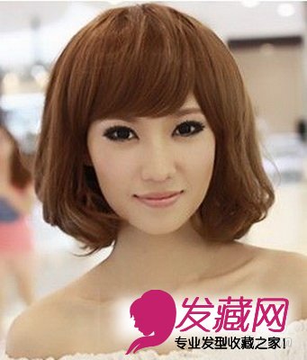 发型发尾稍稍内外,形成裹脸的效果,再搭配遮住额头的斜刘海,就巧妙地将脸型的不足掩盖掉啦!