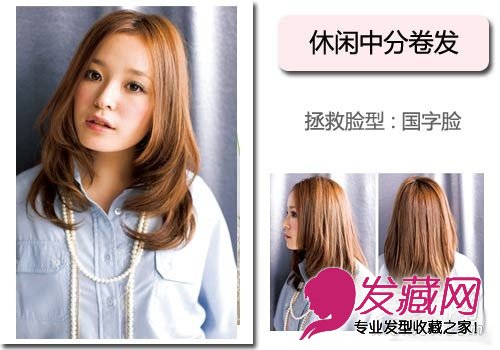 如果女生长着一张国字脸,那肯定会很有“男子气概”~想必MM都很苦恼吧?要想摆脱国字脸的魔咒,MM们就不能错过这款发型咯。中分的长刘海将国字脸鲜明的轮廓模糊,加上特别的内卷营造出了一种休闲文艺青年的气质,很不错呢~