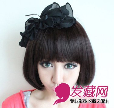 非主流女孩最爱的波波头,俏皮活泼,又显纯真可爱,盖住眉毛的齐刘海突出明亮的大眼睛,头顶再配一个荷叶边发箍更加时尚抢镜。