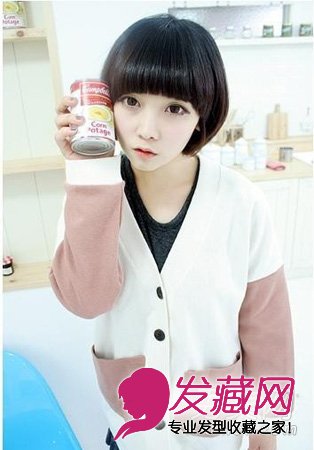 蘑菇头的短发,也是一款韩式的发型。齐刘海可以遮挡脸上的肉肉,并且非常的减龄,卖萌的利器。