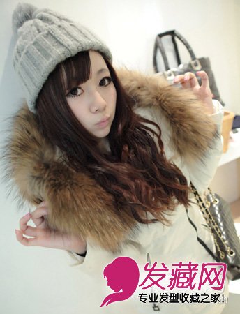 ,青春时尚,微微斜分的刘海凸显精灵的大眼睛。加浅灰色毛线帽搭配更可爱萝莉!