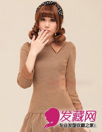 内扣的刘海和两侧发束打造可人小脸,随意扎的双发髻,非常的俏皮可爱,与头顶波点发箍点缀,更能呈现不一样的小萝莉味道