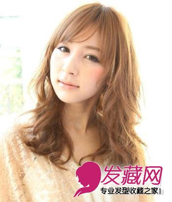 薄薄的斜分刘海有着小女生的清新淡雅,烫上大卷的长发比较蓬松饱满,非常适合发量较少的MM们。