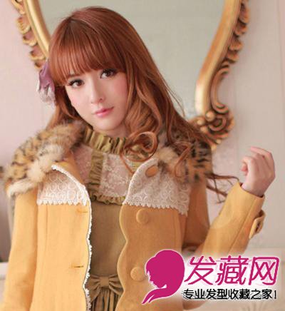 厚厚的齐刘海加上大眼妆萌系十足,烫上螺旋式大卷的长发更是精致甜美,在一侧别上精美的发饰,会让你更加吸人眼球哦。