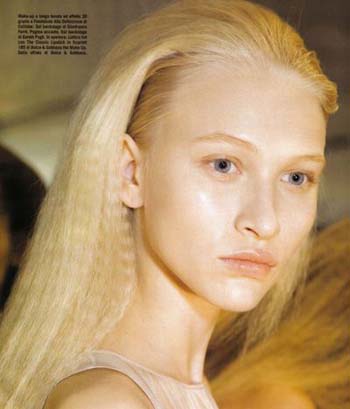 过氧化金发是老外利用过氧化物与头发的作用染发 的一种方法,能使金发看上去更亮更正宗。某时尚杂志就演绎了过氧化金发和漂眉等2013年将大热的趋势。