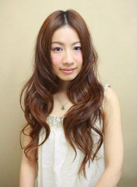 5、大波浪内卷是很好修饰脸型的发型。长头发更能将人的脸型拉长。如果不希望发型显得厚重,就应该懂得运用波浪的层次,从中波浪过度到大浪。搭配橙色令人印象深刻。