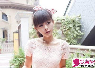 巧妙遮住了过高的额头,显得娃娃脸更加精致小巧,加上头顶的大蝴蝶发饰,简直萌翻了。