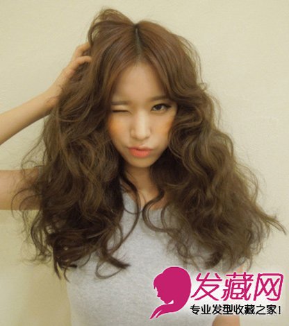 中分的蓬松卷发是一款非常适合大脸女生的发型,这样的一款蓬松发型紧包裹着脸颊,当然是可以起到很好的瘦脸作用的!