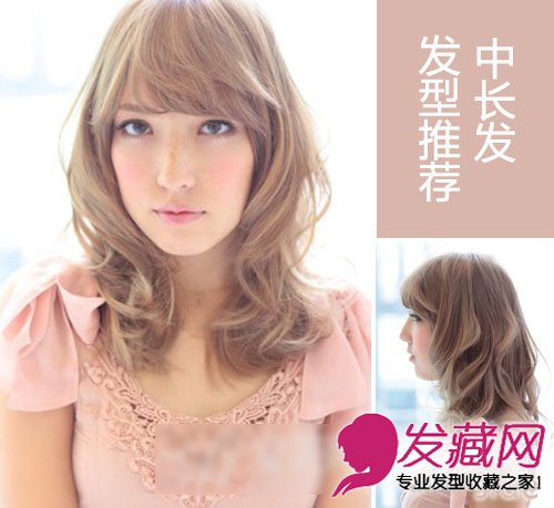 稍有凌乱的的卷发很有随意感,但不会毫无章法。侧梳齐刘海发尾有点上翘,很独特。脸颊两侧则是收敛内卷,突显对脸型的修饰。浅米色的染发符合当季的染发流行趋势,使发型的整体印象更突出。