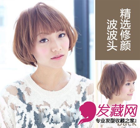 短款的波波头通常长至脸颊而且多以齐刘海搭配。这样的发型能缩短脸型比例而且彰显下巴的纤瘦,十分适合瓜子脸和长脸的女生。