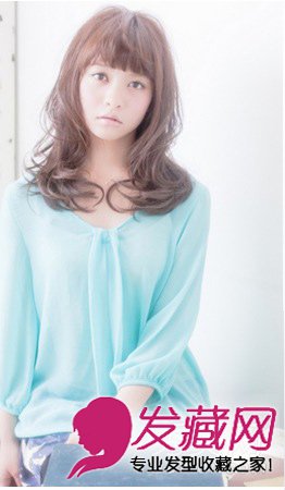 充满了可爱甜美气息圆脸发型,头发松散微凌乱,显可爱,齐刘海与紧贴双颊的长发遮盖额头与部分脸颊,打造出小脸的效果。卷发在锁骨位置,性感可爱。