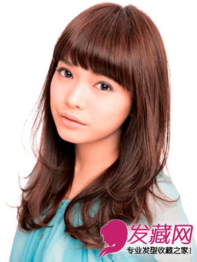 颜色明显衬出皮肤的质感与光泽,及眉的齐刘海整齐服帖,随意间遮掩了过宽的颧骨,大饼脸一下子就变得小巧了不少。卷发柔美的线条女人味十足。