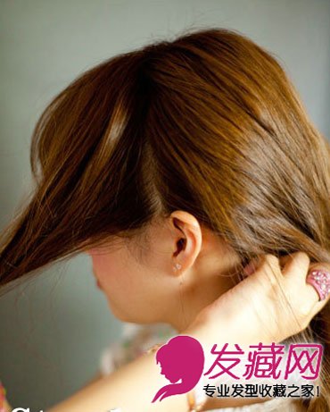梳理好长发,以耳朵为界分出前后部分,前面的发束向前梳理待用。