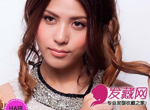 step1:先从左右两侧分别取出一束头发,编成宽松简单的辫子。