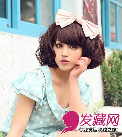 这一款发型有厚厚的刘海,富有层次感的卷发,很有动感的发型,充满空气感觉的发丝可以很好地修饰整个脸型。