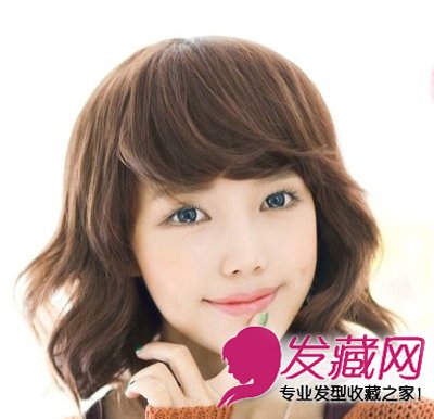 轻易的蓬松卷,前额的长发帘,弧度与外翘的完美合作,超强的修饰作用,使宽脸型变精致脸颊,甜美清新的女人发型。