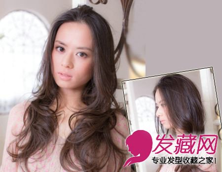 这款中分长卷发几乎露出整个额头,非常清爽,又有点欧美范儿,非常显气质!将前额的发丝梳到脑后,让头顶至脑后形成一个自然的弧度,整款
