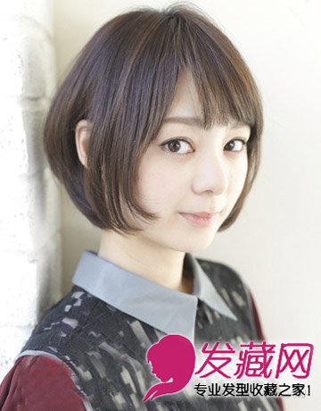 内扣波波头造型,斜分的刘海造型将脸型修饰得更加娇小,搭配上内卷的弧度衬出自然的效果。栗色染发时尚魅力,夹在耳后的发丝,十分清新自然。