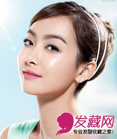 ,展现十分娇俏动人的女生形象,将长发整齐的盘起扎发髻,给人清爽干净的感觉,碎碎的斜刘海灵动而有生气。