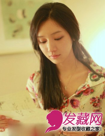 发型,偏分的长发随意的抓起一缕扎在脑后,露出精致的脸蛋,安静的神态淑女范特足。