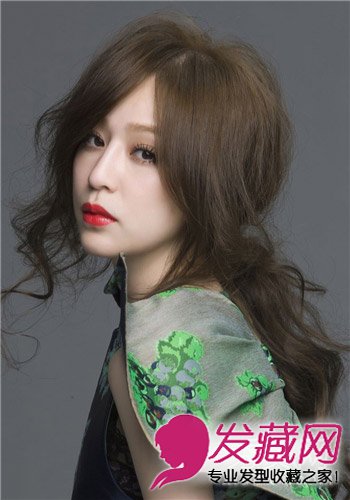 又是一款超赞的发型,用刘海两侧垂下遮住脸型,发尾处松松散散的绑上一个马尾,两侧的大卷增加秀发丰盈的感觉,是打造小V脸的神器。
